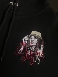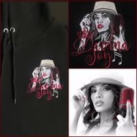 This is the classic image of Davina with her brim and dark red vintage microphone now available to be embroidered on your choice of black hoodies, zip ups or crew neck sweaters. (Please reach out via email or the CONTACT section if you want a different color sweater. Davina will check to see if it's available for you.) All sales are final and please allow anywhere from a week to 2 weeks for these to be made and shipped. (3 weeks at most if your size/style is out of stock and needs to be ordered. in that case, Davina will email you to give you a heads up.)