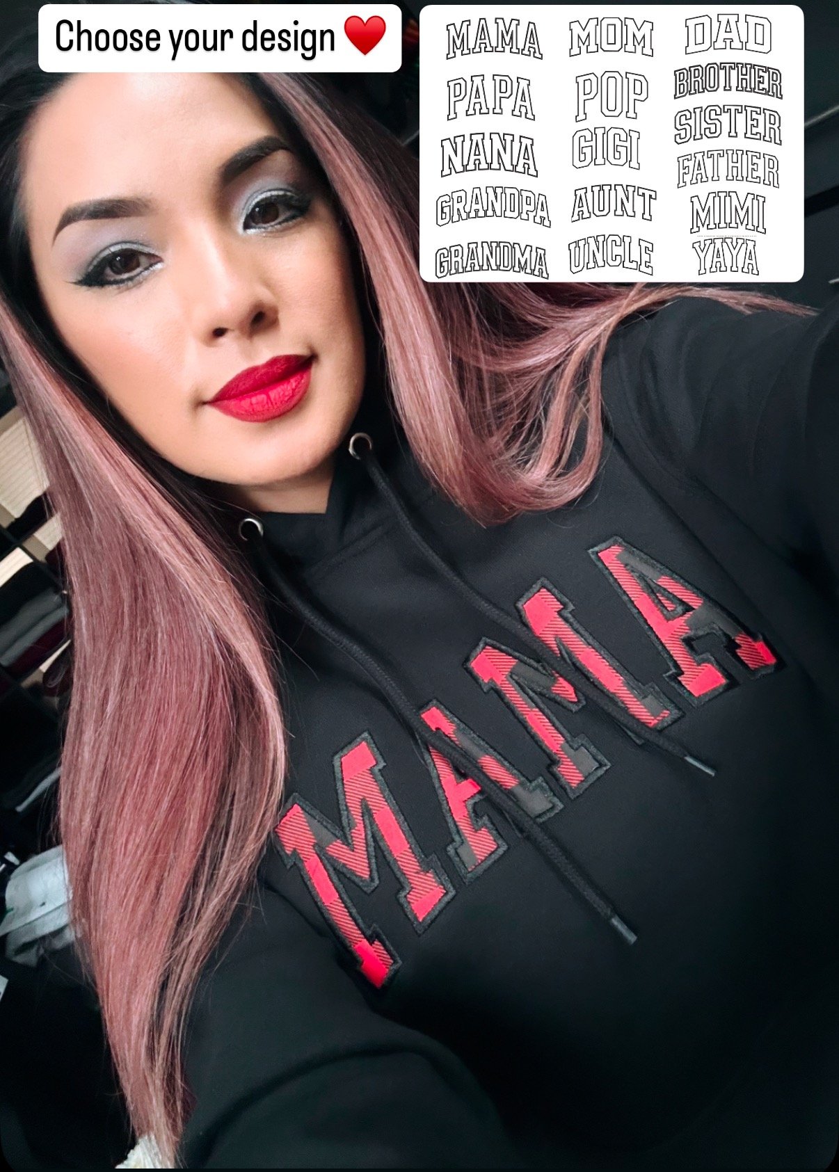 This is a LIMITED run festive Hoodies for the holidays. (Crew necks might be able to be ordered too if time frame is doable before Christmas.) The red and black classic Christmas festive look! You can order a hoodie in your size and color sweater of what is in stock, along with your choice of name (options are shown in photos) and Davina will embroider it for you or your loved ones. Please order these before 12/20- otherwise Davina may not have enough time to make them and ship in time for you to wear on Christmas. The sooner the better. :)