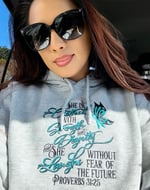 Proverbs 31:25 is the scripture in the Bible that says "She is clothed with strength and dignity and she laughs without fear of the future." This is a very important verse to Davina & she wanted to make sure it's available to all Queens who believe in the same words + wisdom. Please select your size in hoodies, along with the colors available to order. At check out, please make sure to leave notes of what color thread you would like Davina to embroider if you don't see it listed as an option. She will make it happen. If she has any questions, please make sure to leave a working email and phone number for her to reach you at in case she needs to reach you. (Especially if you somehow forgot to leave a note with what color thread you woud like embroidered.)